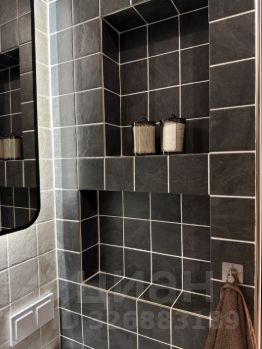 •Ванная комната с душевой, свежей сантехникой и стиральной машиной.