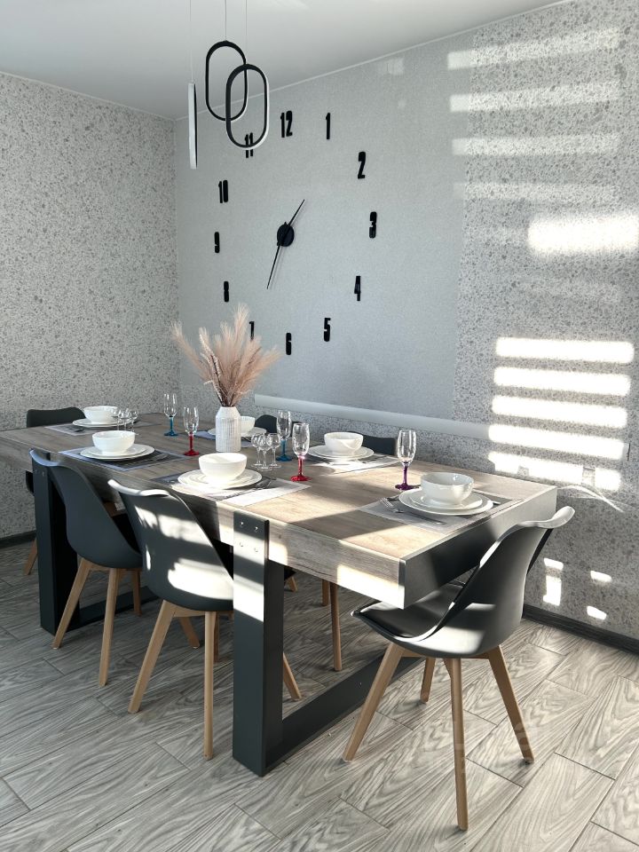В доме: 4 комнаты с 2-х спальными кроватями, ванная, туалет, благоустроенная кухня со всей необходимой техникой и посудой. Постельное бельё и полотенца предоставляются.
