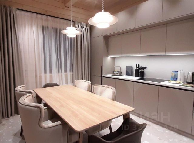В доме просторная гостиная 40 кв.м. с панорамными окнами, обеденной зоной на 10 персон, два дивана и журнальный столик, телевизор, караоке, настольный футбол (кикер), настольные игры, светодиодная подсветка, шкаф, санузел. На кухне есть все необходимое для приготовления и приема пищи: электрическая плита, духовка 35л, СВЧ, мультиварка, кофеварка, чайник, холодильник, посуда для приготовления и сервировки, обеденный стол на 4 персоны. В ванной комнате имеется стиральная машина, утюг и гладильная доска, сушилка, ванна, туалет, раковина, фен.